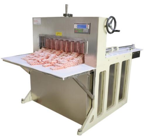 鴻祥瑞數(shù)控切片機HXR-8型一次可以切8卷(板)羊肉或肥牛,鴻祥瑞數(shù)控切片機采用西門子PLC控制,伺服電機傳動,徹底解決了機械切片機故障率高的難 題,真正意義上實現(xiàn)了全自動化。紅外線感應(yīng)安全防護(hù)裝置(選裝),公司通過市場調(diào)研,特研發(fā)一次性刀具,解決部分客戶磨刀難的問題。雙導(dǎo)向推進(jìn)器,自動進(jìn) 退,起刀高度20CM,可以立著切肥牛板,調(diào)整厚薄不用停機,可根據(jù)所需要的厚度在數(shù)控開關(guān)自動加減,每小時可切肉200-300公斤,工作臺采用食品專 用有機塑料板制成,保證食品安全、衛(wèi)生,肉卷無需解凍,可直接上機操作,并可切出多種卷形(粗卷、細(xì)卷、長卷),成形整齊、美觀,并成排列狀,容易包裝, 加工效率高、安全、節(jié)省人工。是食品廠、大、中型牛羊肉批發(fā)商的理想選擇。