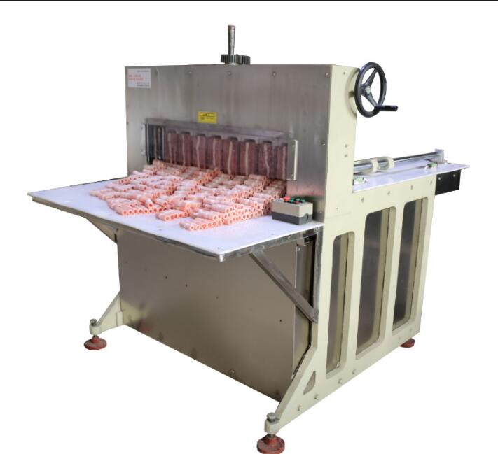 鴻祥瑞數(shù)控切片機HXR-8型一次可以切8卷(板)羊肉或肥牛,鴻祥瑞數(shù)控切片機采用西門子PLC控制,伺服電機傳動,徹底解決了機械切片機故障率高的難 題,真正意義上實現(xiàn)了全自動化。紅外線感應(yīng)安全防護裝置(選裝),公司通過市場調(diào)研,特研發(fā)一次性刀具,解決部分客戶磨刀難的問題。雙導(dǎo)向推進器,自動進 退,起刀高度20CM,可以立著切肥牛板,調(diào)整厚薄不用停機,可根據(jù)所需要的厚度在數(shù)控開關(guān)自動加減,每小時可切肉200-300公斤,工作臺采用食品專 用有機塑料板制成,保證食品安全、衛(wèi)生,肉卷無需解凍,可直接上機操作,并可切出多種卷形(粗卷、細(xì)卷、長卷),成形整齊、美觀,并成排列狀,容易包裝, 加工效率高、安全、節(jié)省人工。是食品廠、大、中型牛羊肉批發(fā)商的理想選擇。